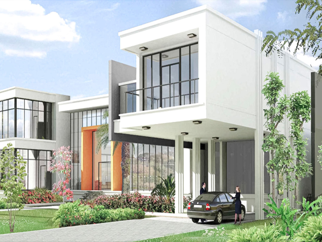 The Villas' contemporary architecture complements t he surrounding landscape. Villa featuring an open layout, high ceilings, and sufficient natural light f r om the waterfront.